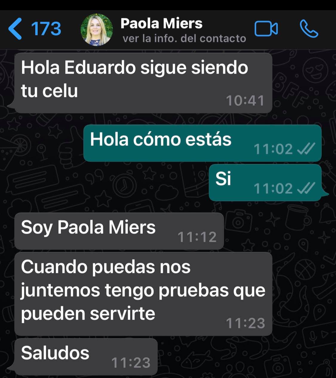 La mujer aseguró también que "está todo en sede Penal" y que testificó "en donde corresponde". "Cualquiera puede cambiar a su antojo los mensajes por lo que no son seguros. Desconozco su vida privada y lamento que un hombre de Derecho camine torcido. El lugar para aclarar es en la justicia no en las redes. No voy a decir más nada esta clarisimo", concluyo.