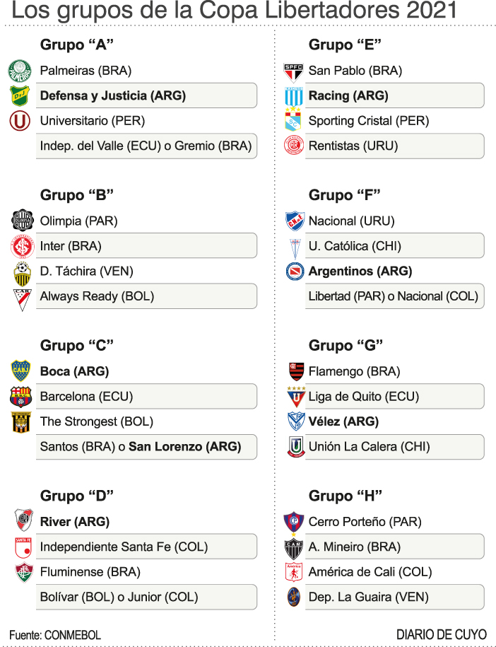 La fase de grupos de la Copa Libertadores 2021 le deparó a Boca una visita a la altura de La Paz y un cruce tradicional con Santos de Brasil o San Lorenzo, en tanto que River encarará un calendario agotador con un viaje a Bogotá para enfrentar a Independiente Santa Fe y una visita a Junior en la tórrida Barranquilla o a Bolívar en la capital boliviana.