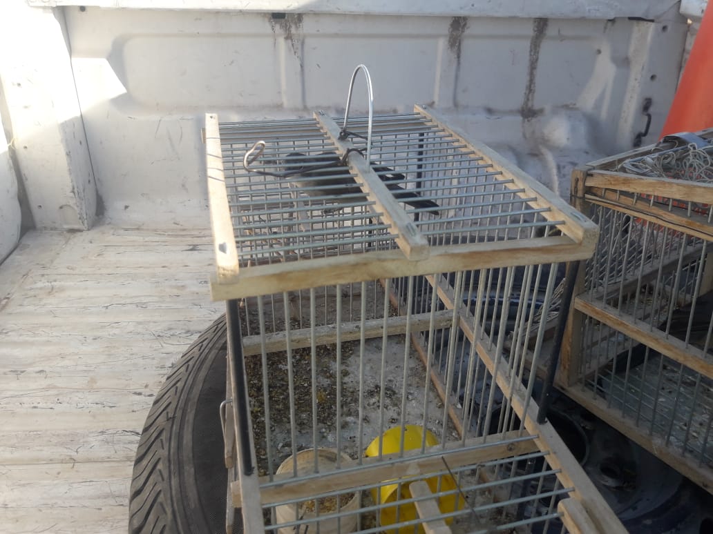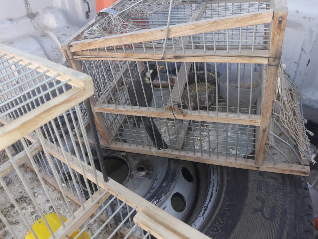 Policías de la Unidad Operativa Alto de Sierra apresaron a dos sujetos que caminaban por la calle con 4 pájaros enjaulados. El procedimiento fue esta mañana, en un descampado ubicado al Norte del Loteo Municipal, en Las Chacritas, 9 de Julio.