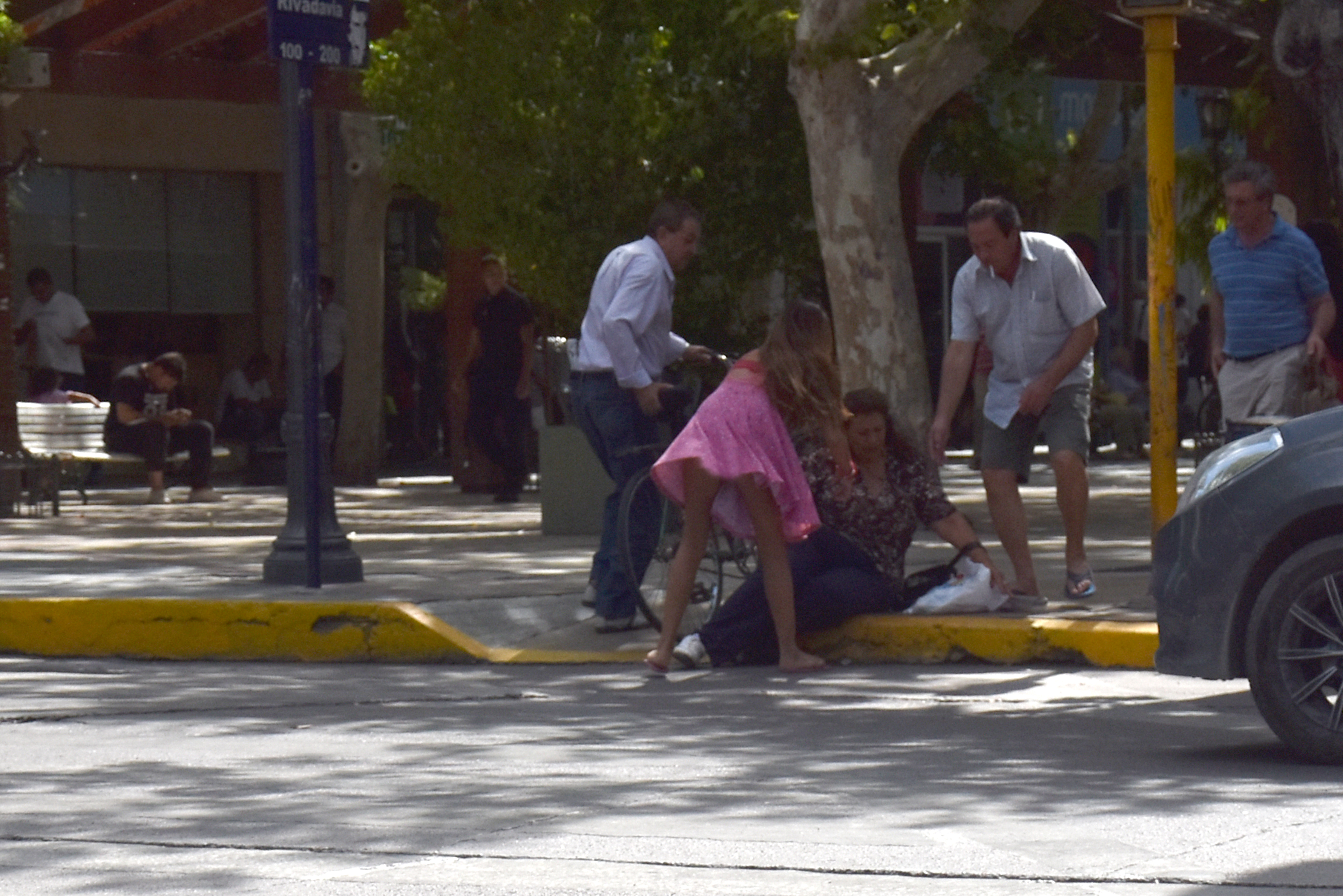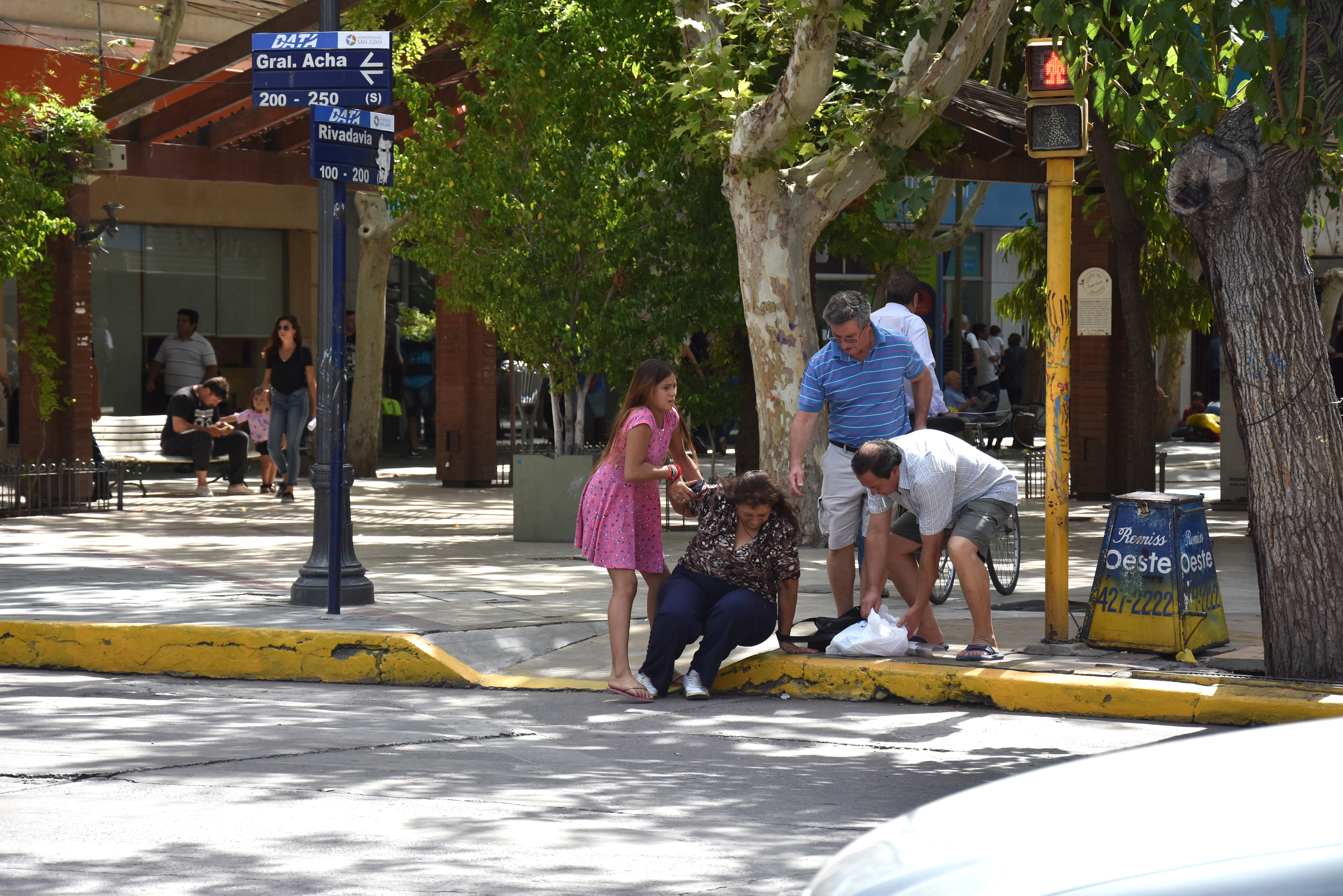La secuencia fue captada por un fotógrafo de DIARIO DE CUYO mientras una mujer se caída en la rampa por pisar el costado resbaladizo que tiene la misma. Ocurrió el mediodía de este martes.