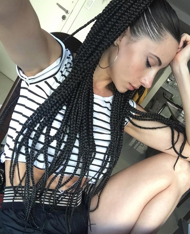La morocha lució su cabello completamente cubierto por pequeñas trenzas, de la forma en que suelen utilizar las bailarinas de hip hop.