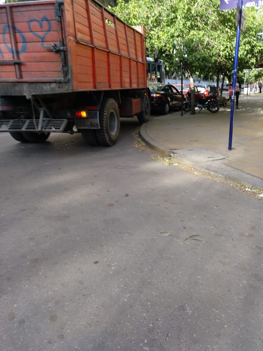 Un lector envió una imagen y el siguiente comentario: "Este camión contratado de la Municipalidad de la Capital estuvo parado en esa ochava de calle Santa Fe y Patricias Sanjuaninas por muchos minutos. Además no tenía chapa patente".