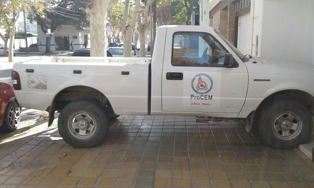 Un lector envió una imagen y el siguiente comentario: "Esta camioneta del Procem (del programa que combate la mosca de los frutos) estacionada en la vereda. Esto es Caseros 126 Sur".