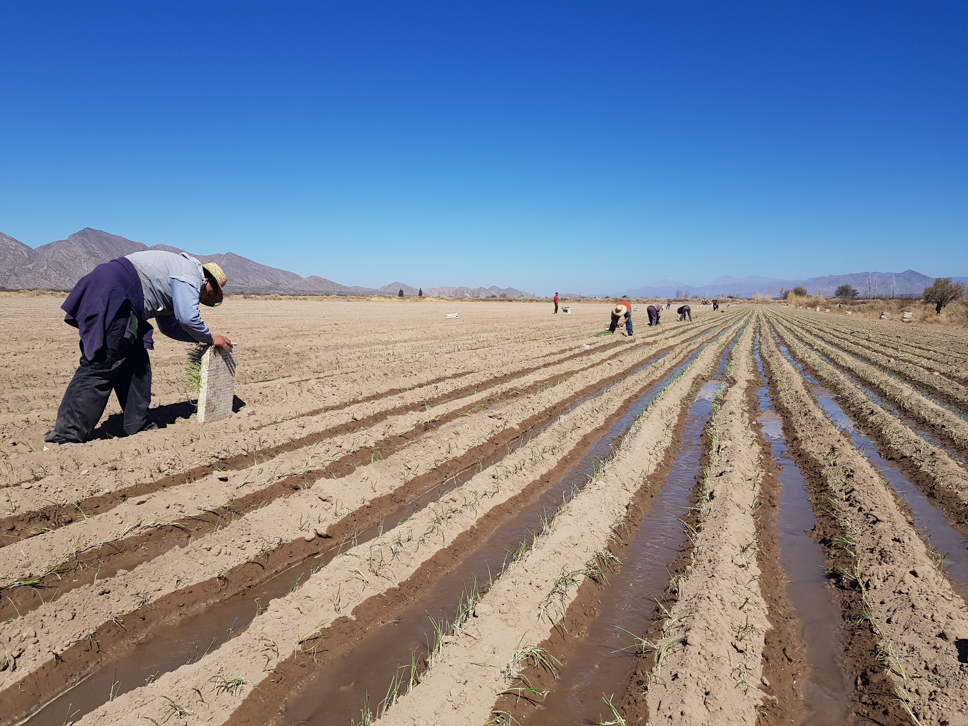 Todo suma. Tanto con las mejores tecnologías como es el caso de las máquinas trasplantadoras italianas y americanas para hortalizas, como tomate, melón o sandía, como en el clásico trabajo de trasplante a mano (foto en cebolla), también efectivo, lo importante es que este sector no se detiene. El sol sale para todos…