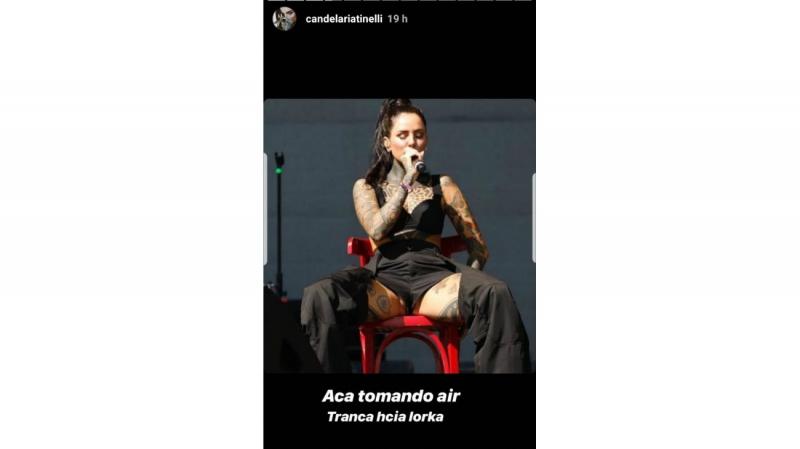 “Acá tomando air (Aire). Tranqui, hacía lorca”, escribió en su sección de Intagram Stories. A diferencia de la drástica decisión que tomó tras su recital en San Isidro, Cande se tomó con buena onda el descuido hot que provocó su vestuario, y además, se mostró muy confiada y feliz con su cuerpo, algo importante teniendo en cuenta la impactante revelación que hizo en las redes sociales durante el año pasado, al hablar sobre cómo sufrió anorexia.