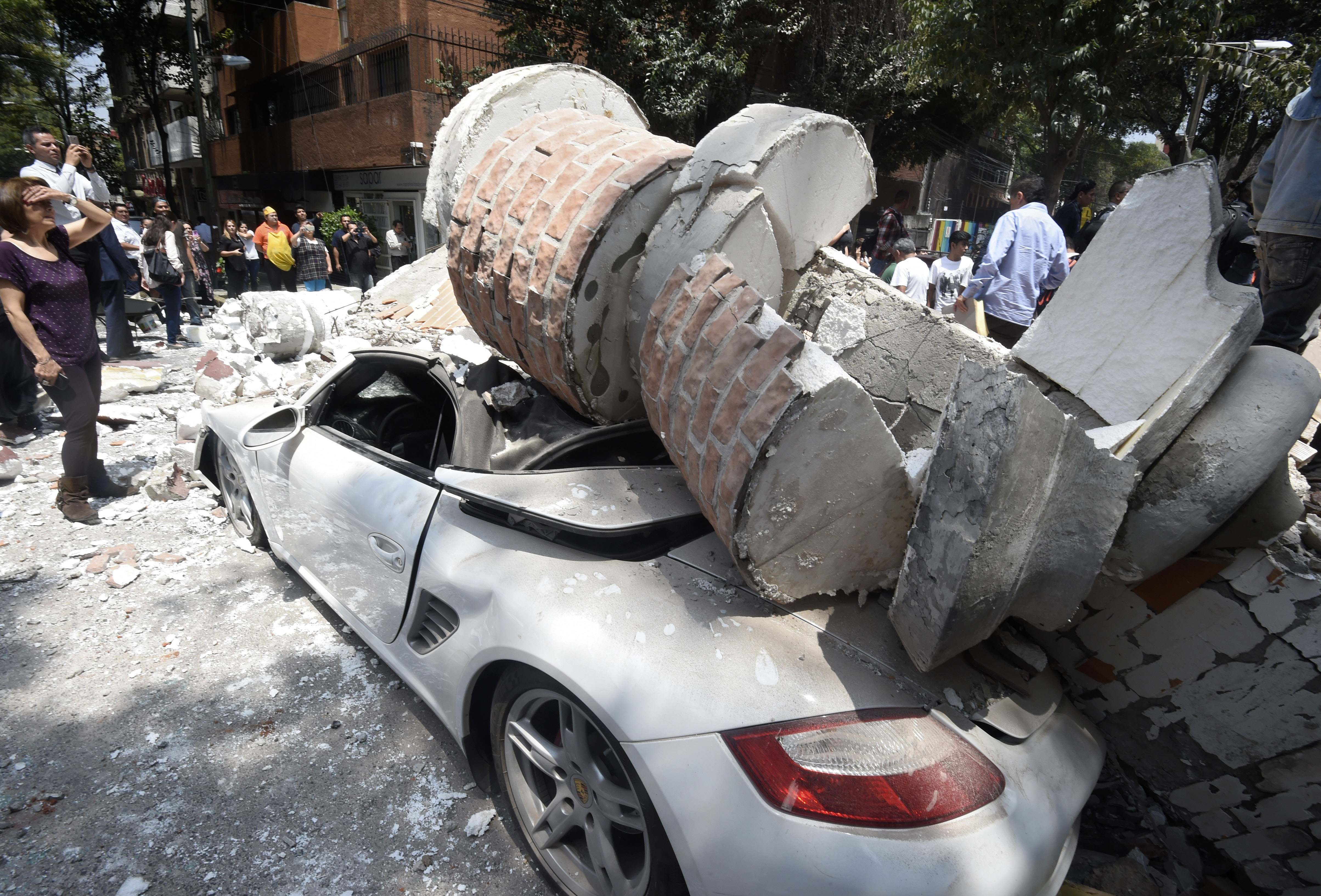 Aplastado. Una mole de cemento cayó sobre este auto en el corazón de la ciudad. Esta imagen se repetía en las principales calles del Distrito Federal.