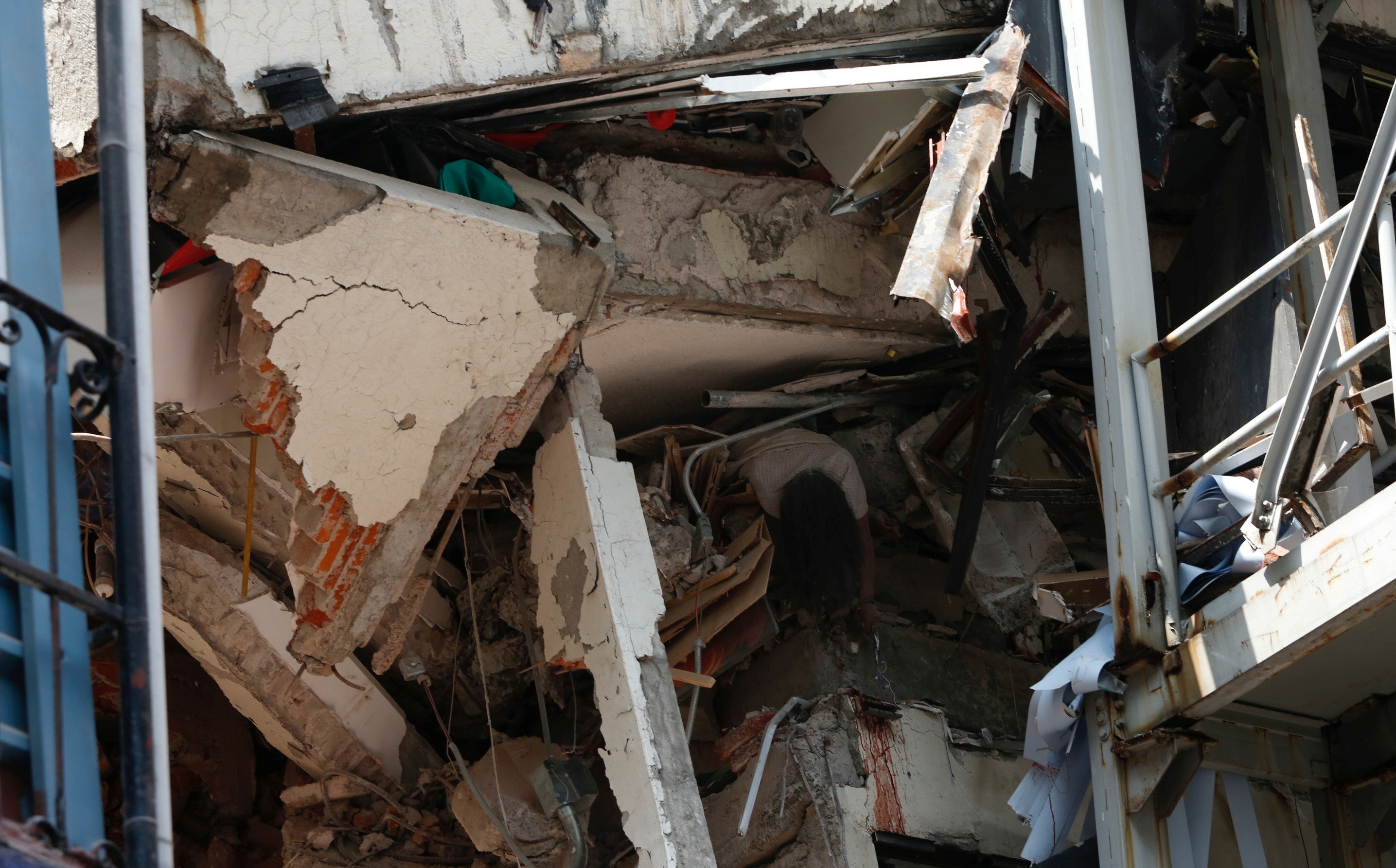 Escalofriante. Una víctima mortal del terremoto yace atrapada entre los escombros en uno de los edificios colapsados de la Ciudad de México. Un mudo testigo de otro día dramático que dejará huellas imborrables en la memoria de los mexicanos.