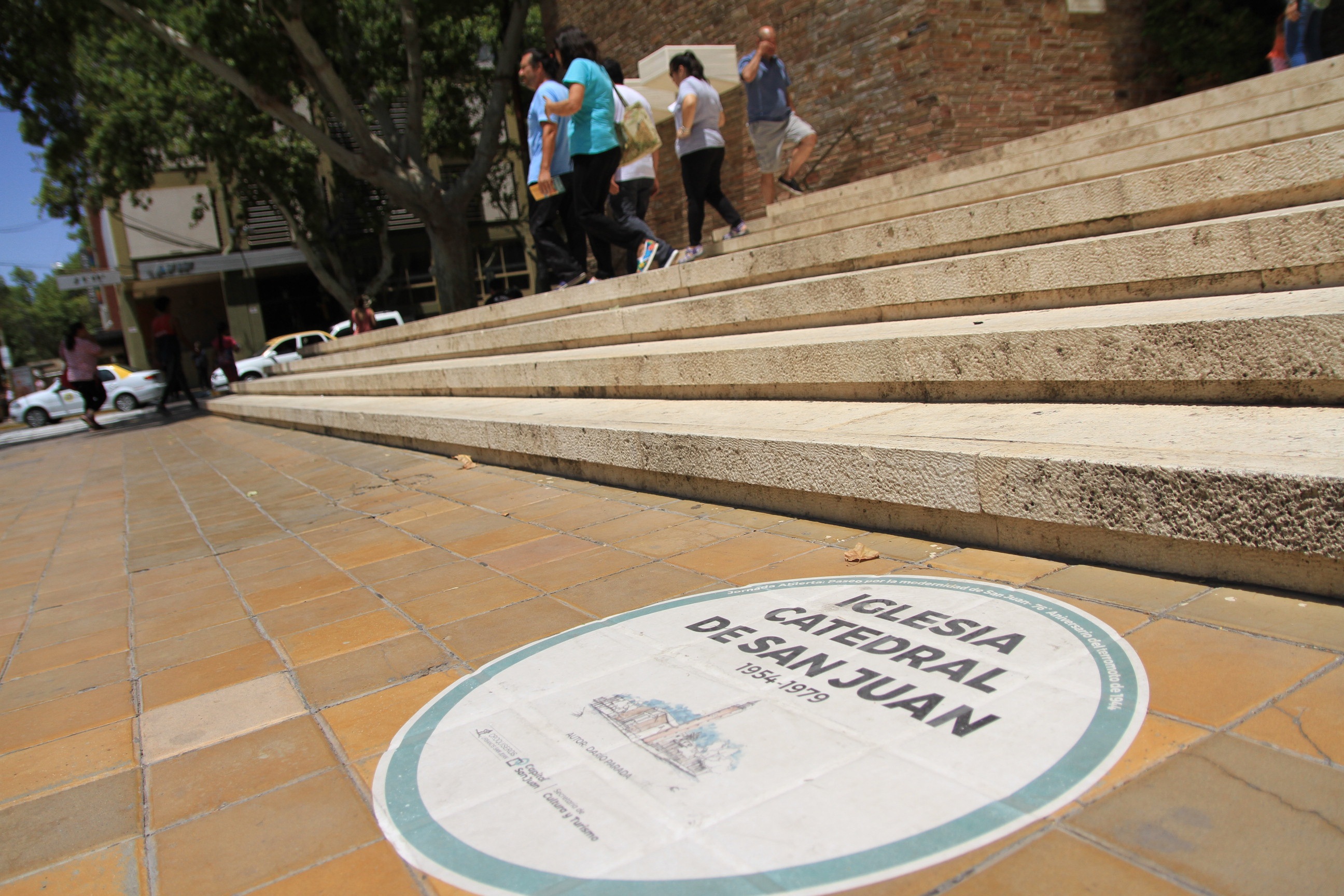 Se tomó como circuito el llamado Eje Cívico del plan de reedificación de la Ciudad, colocándose stickers que identifican a esas estructuras como parte de la nueva ciudad. Así, se comenzó en Ignacio de la Roza y Catamarca, edificio de Obras Sanitarias Sociedad del Estado (OSSE), construido entre 1957 y 1962, luego se pasó al Banco de San Juan, levantado entre 1952 y 1956, que comparte la manzana, frente a la plaza "25 de Mayo", con la iglesia Catedral cuya piedra basal se colocó en 1954, y su inauguración se concretó 1979. La siguiente parada fue el edificio de Correos, ejecutado entre 1952 y 1957, posteriormente el Banco Nación, construcción finalizada en 1950, una de las primeras grandes obras tras aquel movimiento telúrico, así como la actual sede de la Justicia Federal en San Juan, que originalmente se construyó en 1947 para el Banco Nacional de Desarrollo o Banco Industrial. Este edificio comparte manzana con el actual Rectorado de la Universidad Nacional de San Juan, habiendo sido construido para sede del Banco Hipotecario Nacional. El final de la caminata fue en la Municipalidad de la Capital, cuyo inmueble llamado "Palacio Municipal", de estilo moderno y monumentalista, fue inaugurado en 1978. Este recorrido pone en valor una urbanización moderna, edificada tras una catástrofe, por lo que se la considera con un alto interés urbano, estético, científico y social, dada su traza ordenada, sus veredas anchas, acequias con arbolado y frentes con galerías que protegen del sol, como expresa la Comisión Nacional de Monumentos, de Lugares y Bienes Históricos. El citado Eje Cívico fue construido tras la aprobación del Plan Regulador y de Extensión de la Ciudad de San Juan, que fue elaborado por la Asesoría Urbanística del Consejo de Reconstrucción de San Juan, a cargo del arquitecto José M. Pastor, fallecido en 1981 a los 67 años de edad, y a quien debemos los sanjuaninos un homenaje popular.