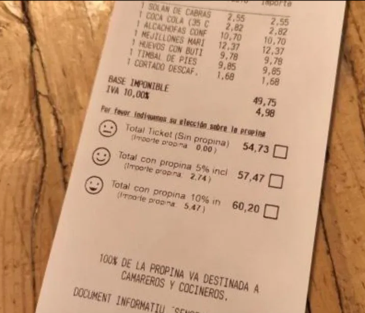 En la imagen en cuestión, que no tardó en volverse viral en la red social del pajarito, se ve el ticket de una cena, la cual tuvo un costo total de 54.73 euros, contando el IVA.
