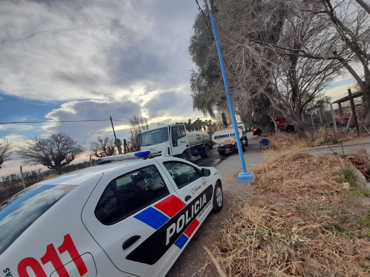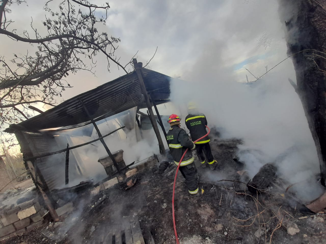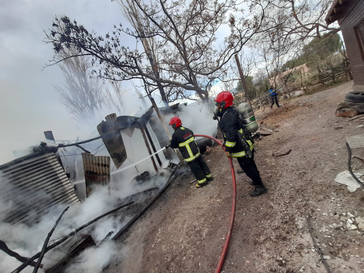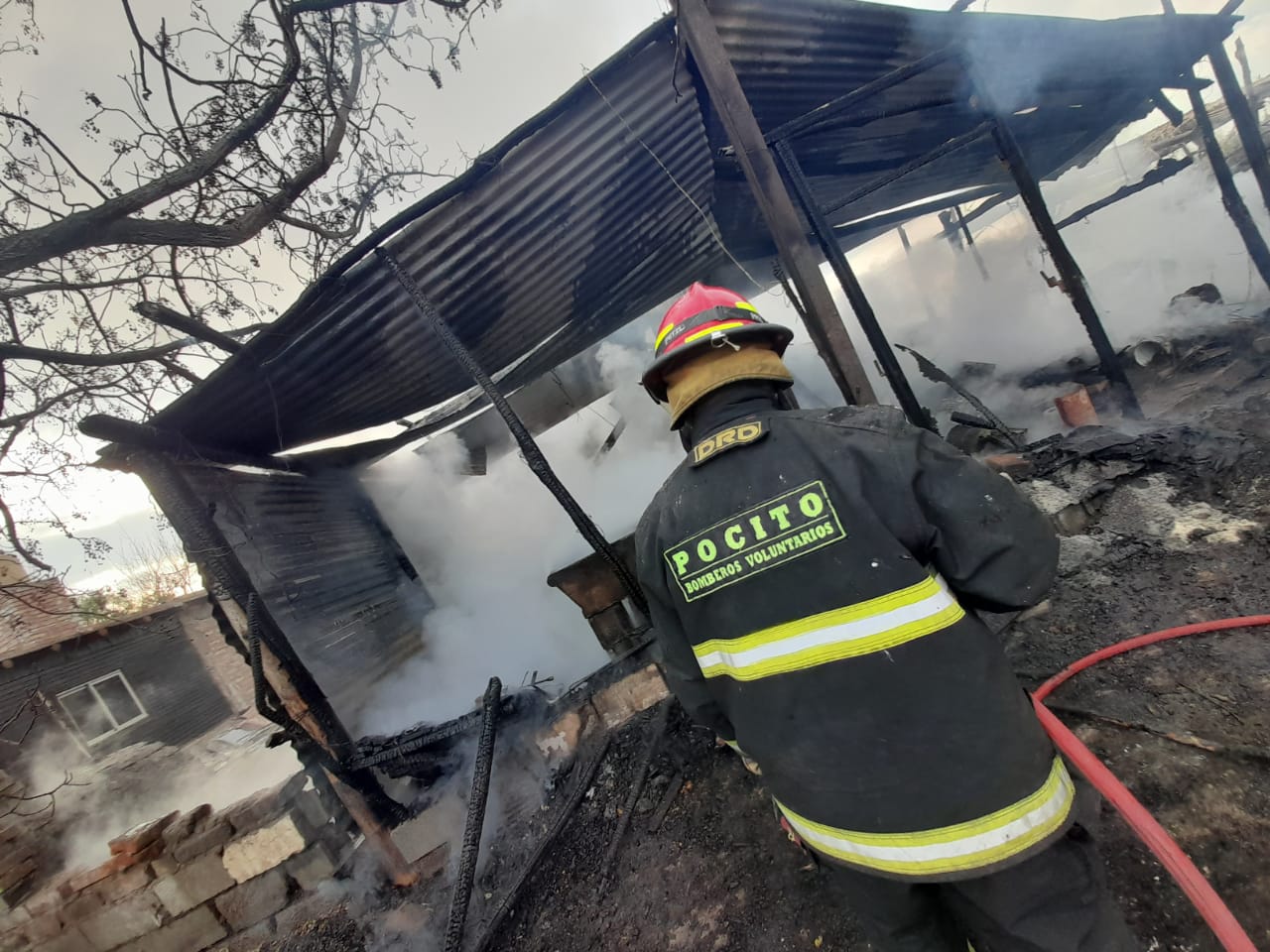 Bomberos voluntarios del departamento llegaron al lugar, secundados por otras dos dotaciones de la Policía de San Juan. Afortunadamente, todos los integrantes de la familia lograron salir a tiempo por lo que no hubo que lamentar heridos. Además, una vez afuera pudieron rescatar a los burros y caballos que tenían en un establo.