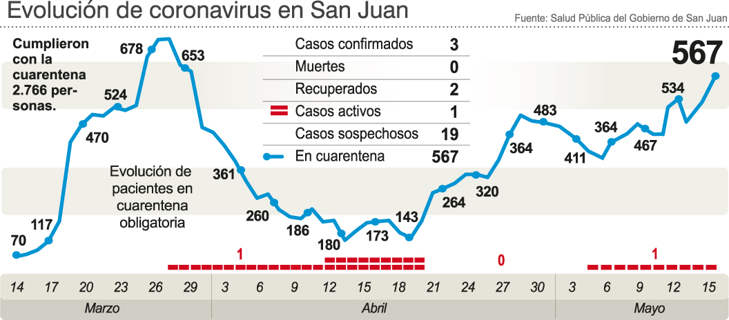 Por otro lado, Mónica Jofré, jefa de Epidemiología, indicó que el enfermo de Covid-19 sigue internado en el hospital Rawson y que su estado de salud continúa en franca evolución, aunque la prueba de control que le realizaron indicó que aún es positivo por coronavirus. De todos modos, ayer era inminente que lo pasaran de Terapia Intensiva a una sala Covid-19 de Clínica Médica del hospital.