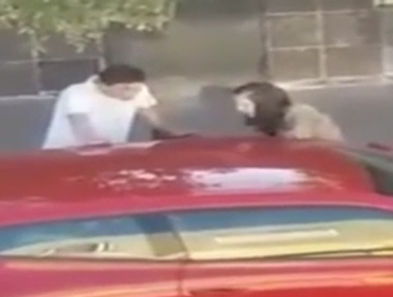 Según se pudo conocer, los infieles estaban en el auto rojo junto con un grupo de amigos del muchacho, cuando la novia oficial irrumpió gritando ante ellos -el vehículo estaba estacionado en calle Mariano Moreno, a escasos metro de una estación de servicios- y exigió que la amante saliera del auto: "Bajate c*liada".