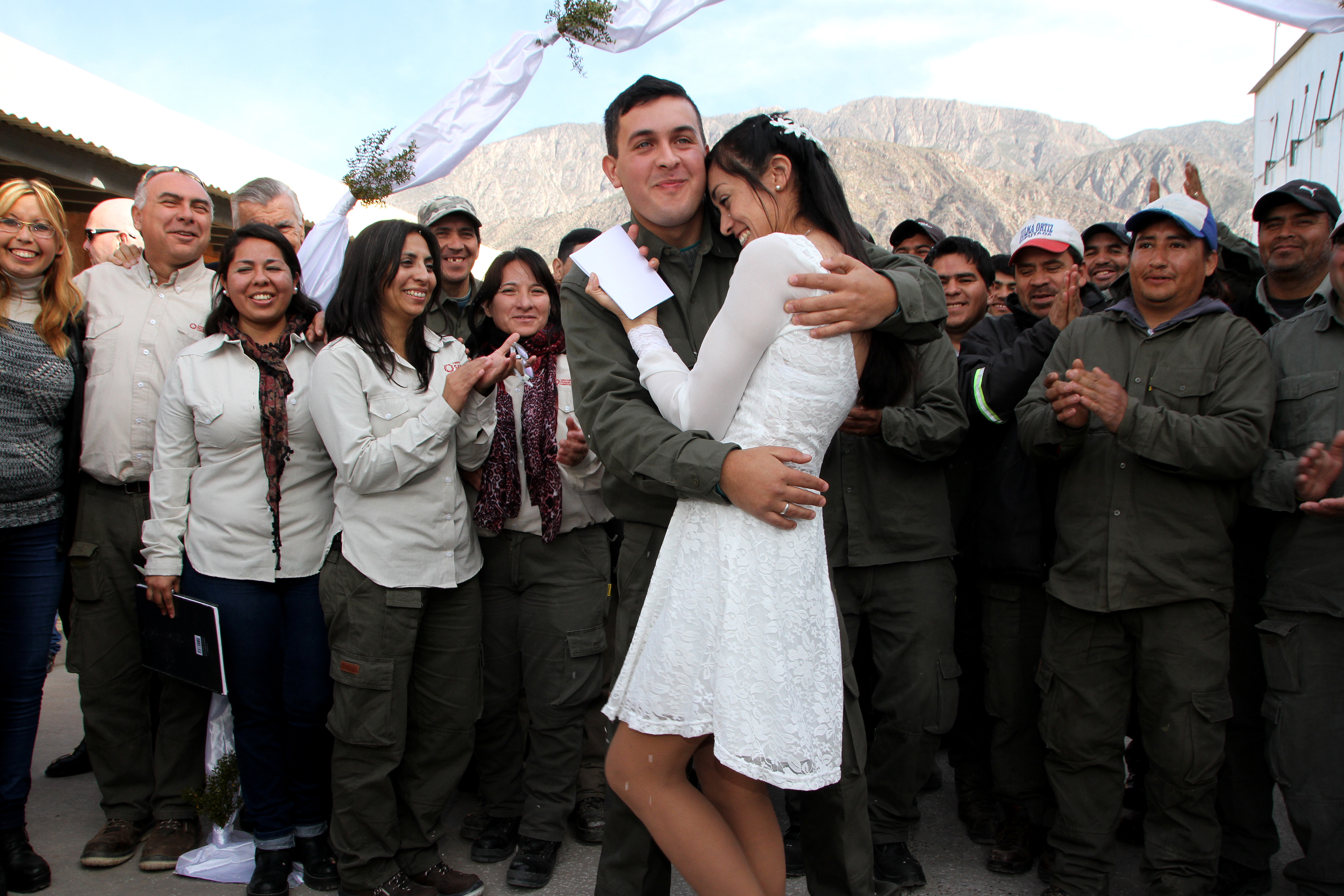La ceremonia tuvo algunos invitados especiales que incluso fueron testigos de la boda. Ellos mismos insistieron para que estén, como ‘el jefe’ de Nicolás, Raúl Tello (secretario de Ambiente y quien dio el OK para el casamiento en ese lugar), el exgobernador Gioja y otros funcionarios