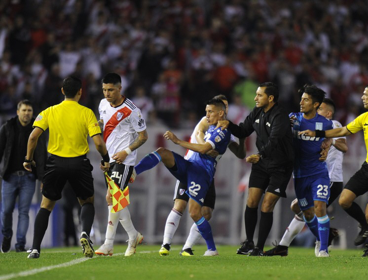 Inexplicable e innecesariamente, cuando Enzo Pérez hacía el recorrido hacia el cambio (iba a ser reemplazado por Rodrigo Mora) provocó con gestos y palabras a Ricardo Centurión. "Pisala ahora", le tiró a la pasada, lo que generó la reacción del jugador de Racing y la hecatombe: Ricky le empezó a pegar patadas de atrás a Pérez, insultos, manotazos… Estaba incontrolable ante un Enzo Pérez que seguía su camino hacia el banco.