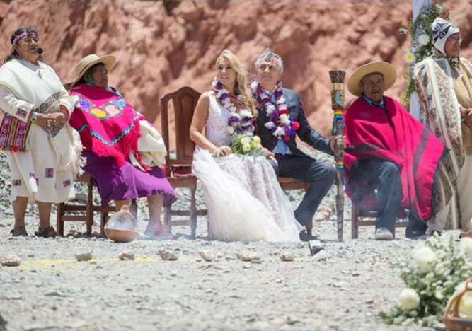 El gobernador de Jujuy, Gerardo Morales, y Tulia Snopek contrajeron matrimonio ayer en una ceremonia andina al pie del cerro Los Colorados, de la localidad quebradeña de Purmamarca.