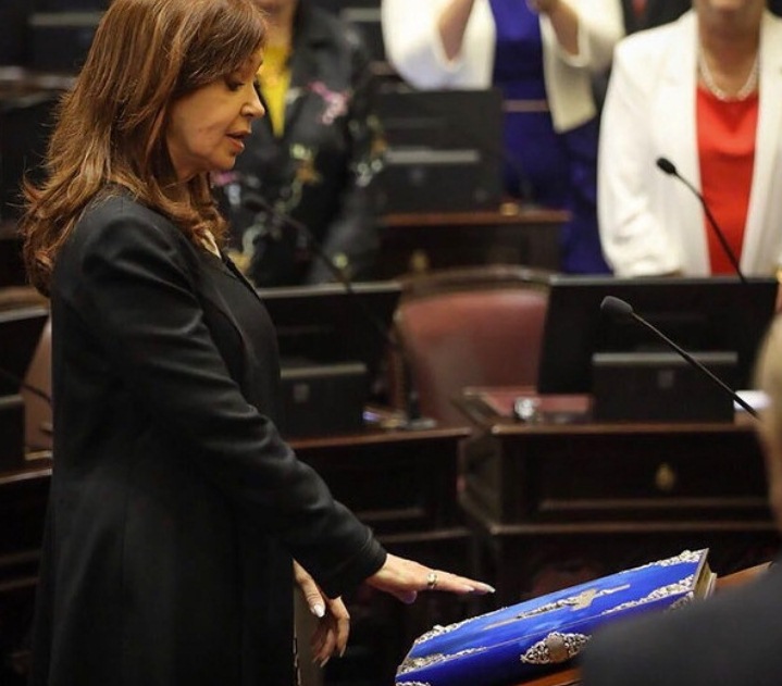 Cristina Kirchner juró su tercer mandato en el cargo de Senadora Nacional. La ex Presidenta fue una de las primeras en jurar, debido a que representa a Buenos Aires y el llamado a funcionarios se hace en orden alfabético, teniendo en cuenta los nombres de la provincia. Lo hizo después de Esteban Bullrich.