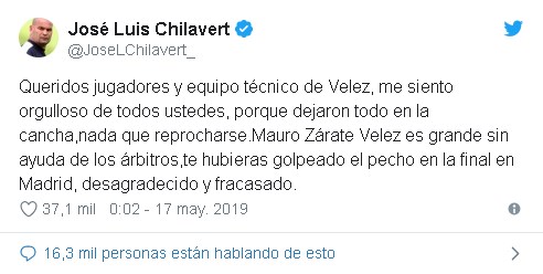José Luis Chilavert no se quedó callado después de lo sucedido en el encuentro entre Boca y Vélez, y por intermedio de su cuenta de twitter criticó con dureza a Mauro Zárate.