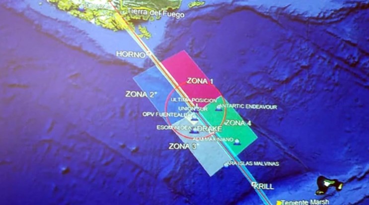 “Tenemos cuatro cuadrantes de búsqueda. Cada uno son aproximadamente unos 240 kilómetros por unos 120. Estamos hablando de una distancia entre Santiago y Chillán, y el ancho de Chile”, dijo Mosqueira a periodistas en la base aérea de Chabunco, en la ciudad de Punta Arenas, a unos 3.000 km al sur de Santiago.