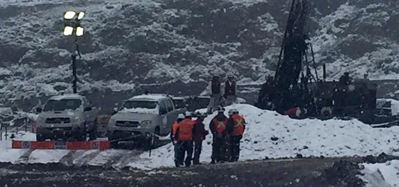 Los especialistas de la Dirección de Obras Hidráulicas trabajan aceleradamente en disminuir el nivel de las aguas en la mina de Chico Chico, de Chile,  en la que permanecen enterrados los mineros Enrique Ojeda (34) y Jorge Sánchez (26) desde hace siete días.