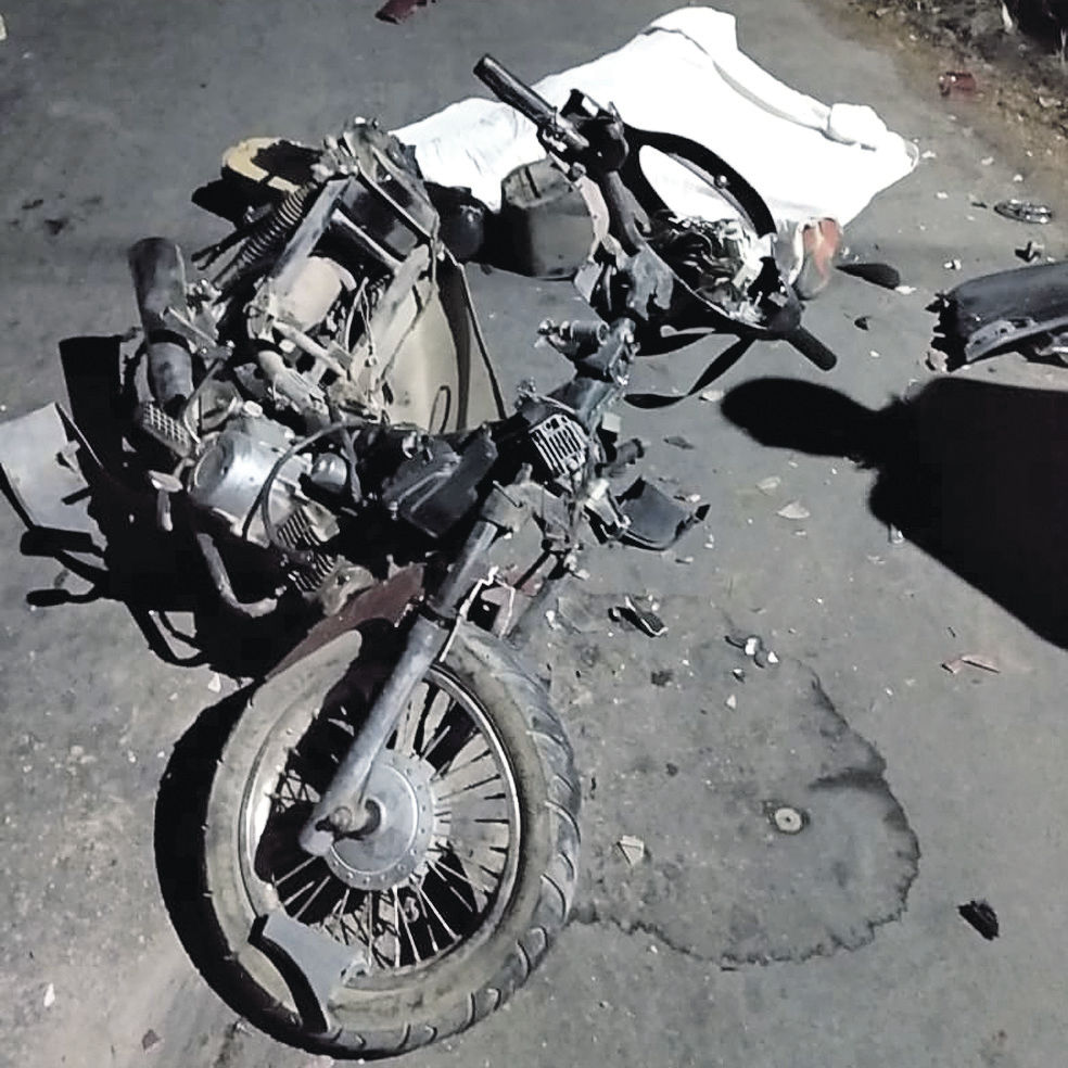 La moto de la víctima quedó destruida tras el impacto. Atrás, tapado, yace el cadáver del hombre, quien falleció prácticamente en el acto. Su acompañante estaba estable.