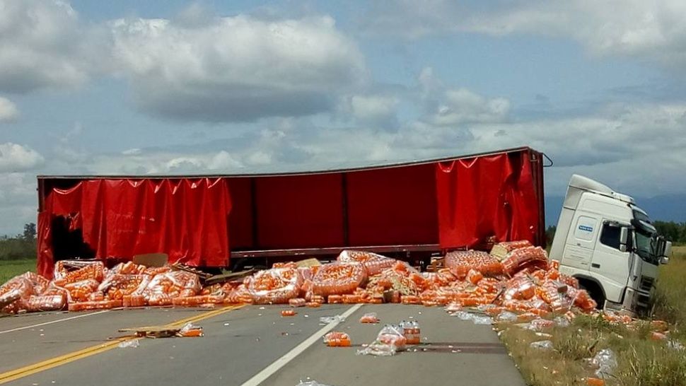Policías, bomberos voluntarios y personal del 107 trabajó en el lugar. En medio del operativo, vecinos se acercaron para llevarse las gaseosas que transportaba el camión y que debían ser retiradas por otro vehículo de transporte.