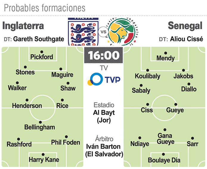 Inglaterra, campeón mundial en 1966 y uno de los invictos del torneo, jugará hoy (desde las 16) ante Senegal, vigente campeón africano, en un partido que también representa un choque de estilos.