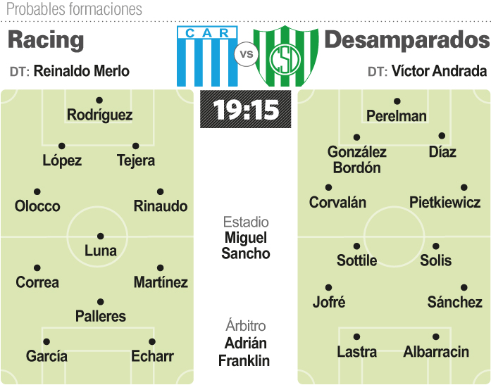 En lo deportivo, Desamparados llega más que entonado tras su triunfo de entresemana ante Juventud Unida, jugando tal vez su mejor partido en todo el certamen. Puntero, ganador, el equipo de Andrada solamente tendrá una modificación y será el regreso de Leonel Pietkiewicz en el lateral izquierdo en lugar de Ramella quien jugó ante la Juve puntana. El resto, igual. Repitiendo el mediocampo con Jofré, Sottile, Solis y Sánchez, más la dupla ofensiva con Lastra y Albarracín. Sin misterios, apostando a la solidaridad en todas sus líneas, Desamparados intentará salir bien parado contra un rival que perdió tiempo y puntos en la primera rueda pero que ahora con Merlo al frente, empezó a recuperarlos. Mostaza repetirá la misma alineación que antes de la fecha libre metió un triunfo en San Luis.