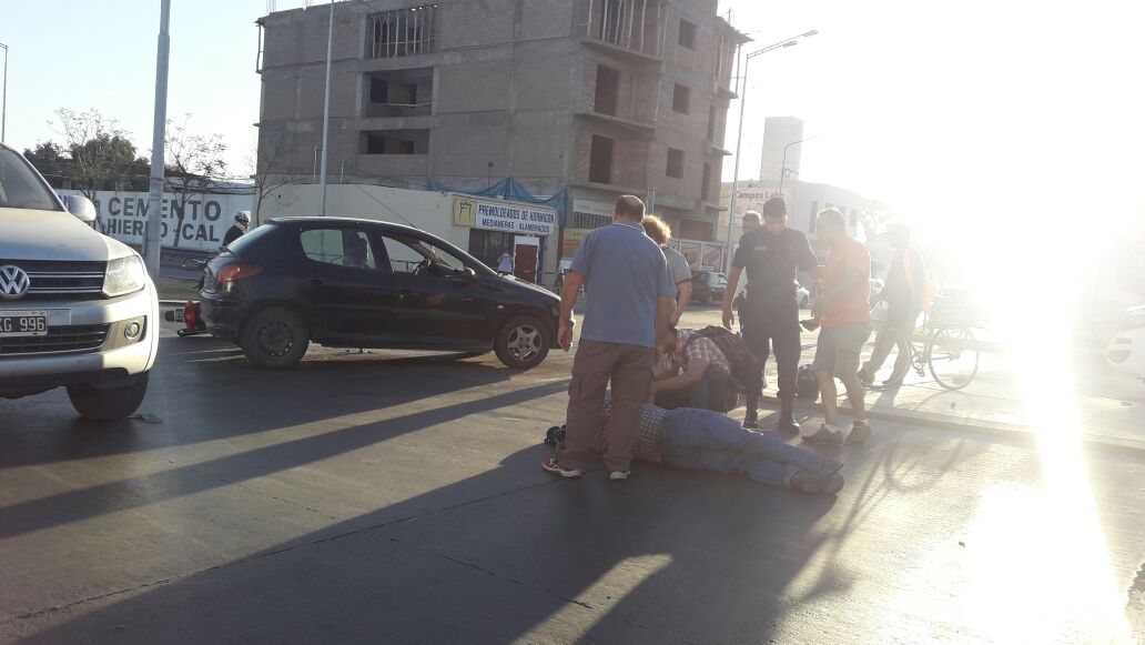 Un Peugeot 206 impactó a un motociclista cuyo conductor terminó en Urgencias del Hospital Rawson.