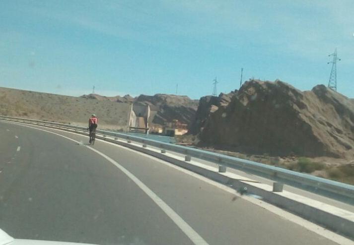 “¿Y la ciclo vía?”, se preguntó la lectora que envió imágenes de ciclistas circulando sobre la Ruta del Sol, camino hacia del Dique de Ullum, sobre la calle.
