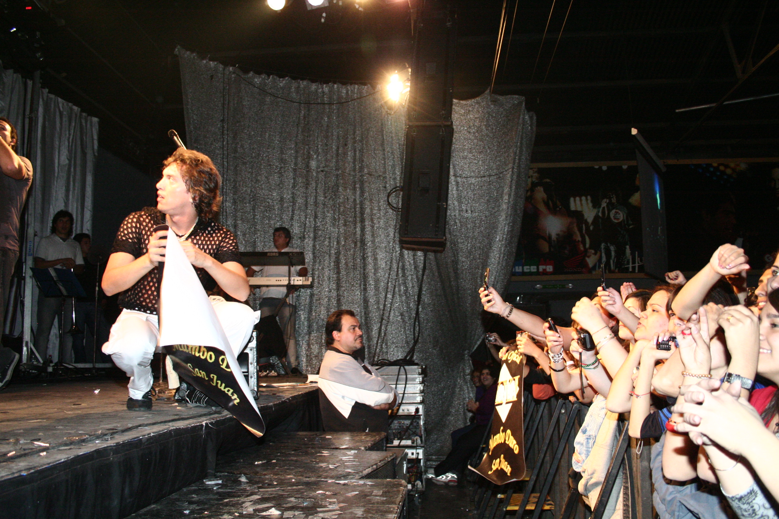 A pleno. Por Hugo pasaron cientos de artistas, como Gustavo Cordera (arriba), Miguel Mateos, Charly García, Abel Pintos y La Banda XXI (abajo).