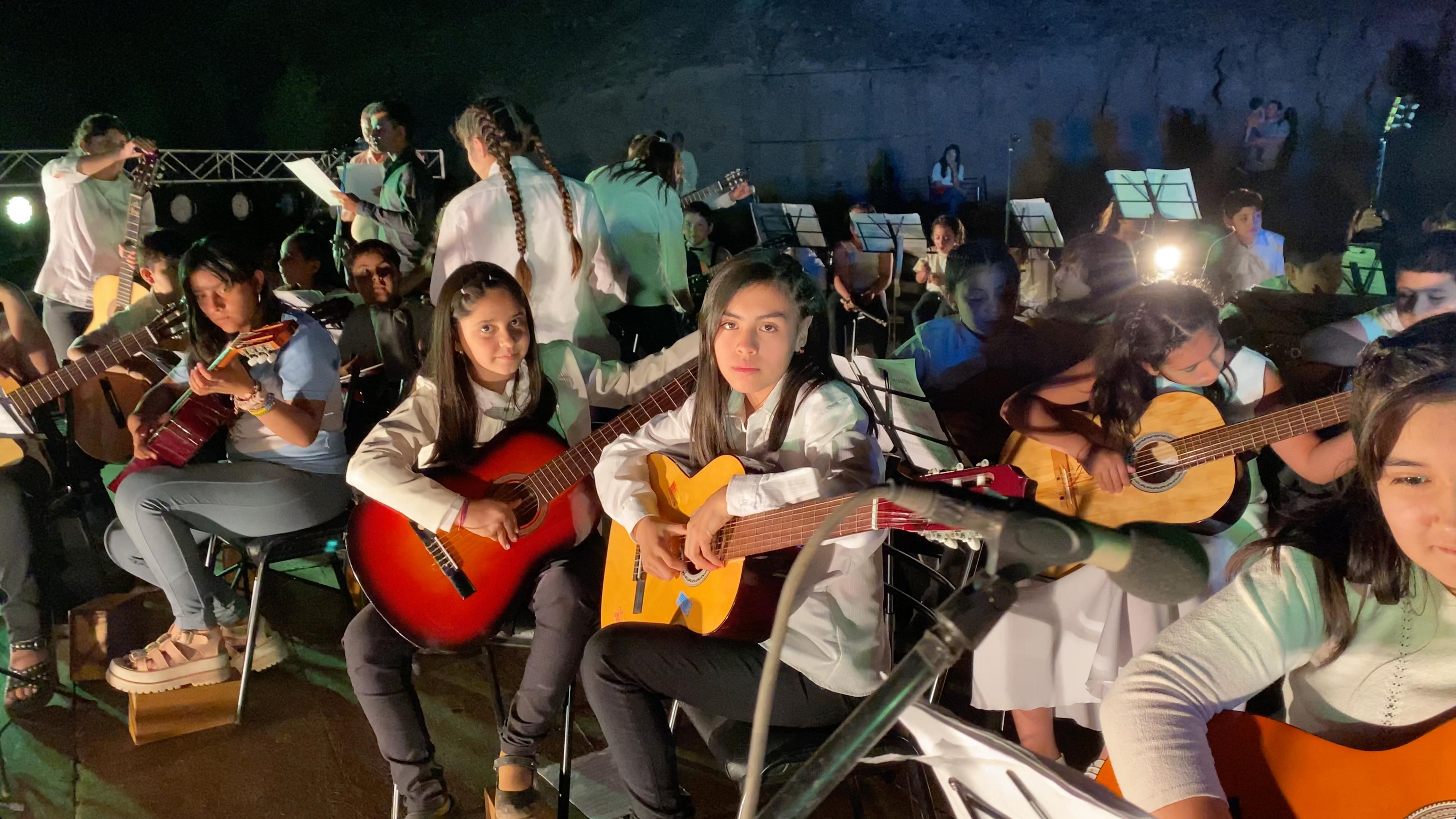 Los alumnos de las escuelas de música y de teatro presentaron una muestra de sus aprendizajes en el anfiteatro La Hermita, en Tamberías, ante un auditorio de 1500 personas.