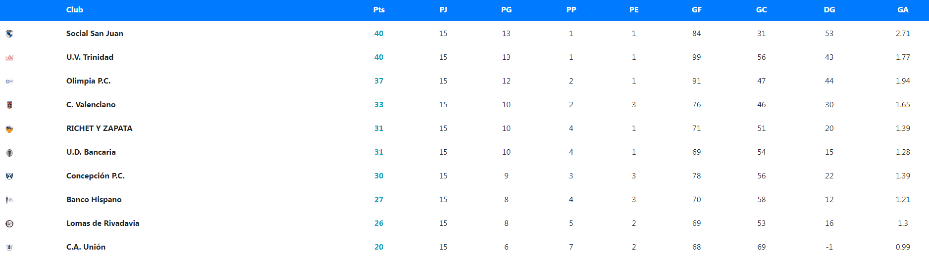 Bancaria le ganó 6-3 a Colón Junior y quedó sexto, Concepción derrotó 6-4 a Unión Deportiva Caucetera para ubicarse séptimo y Banco Hispano, el octavo, le ganó 5-0 a Huarpes.