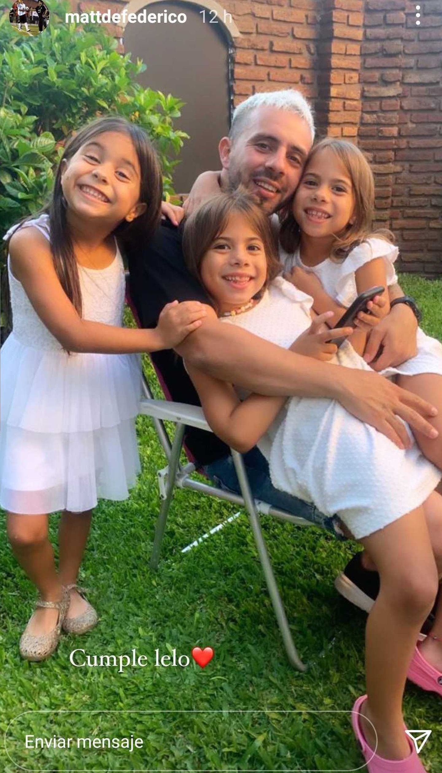 Ante las reacciones de su ex, y por acusarlo de no prestarle atención a Charis, Bella y Francesca cuando están en su casa, contestó con una postal familiar donde se lo ve con sus tesoros más preciados, que posan muy felices y sonrientes.