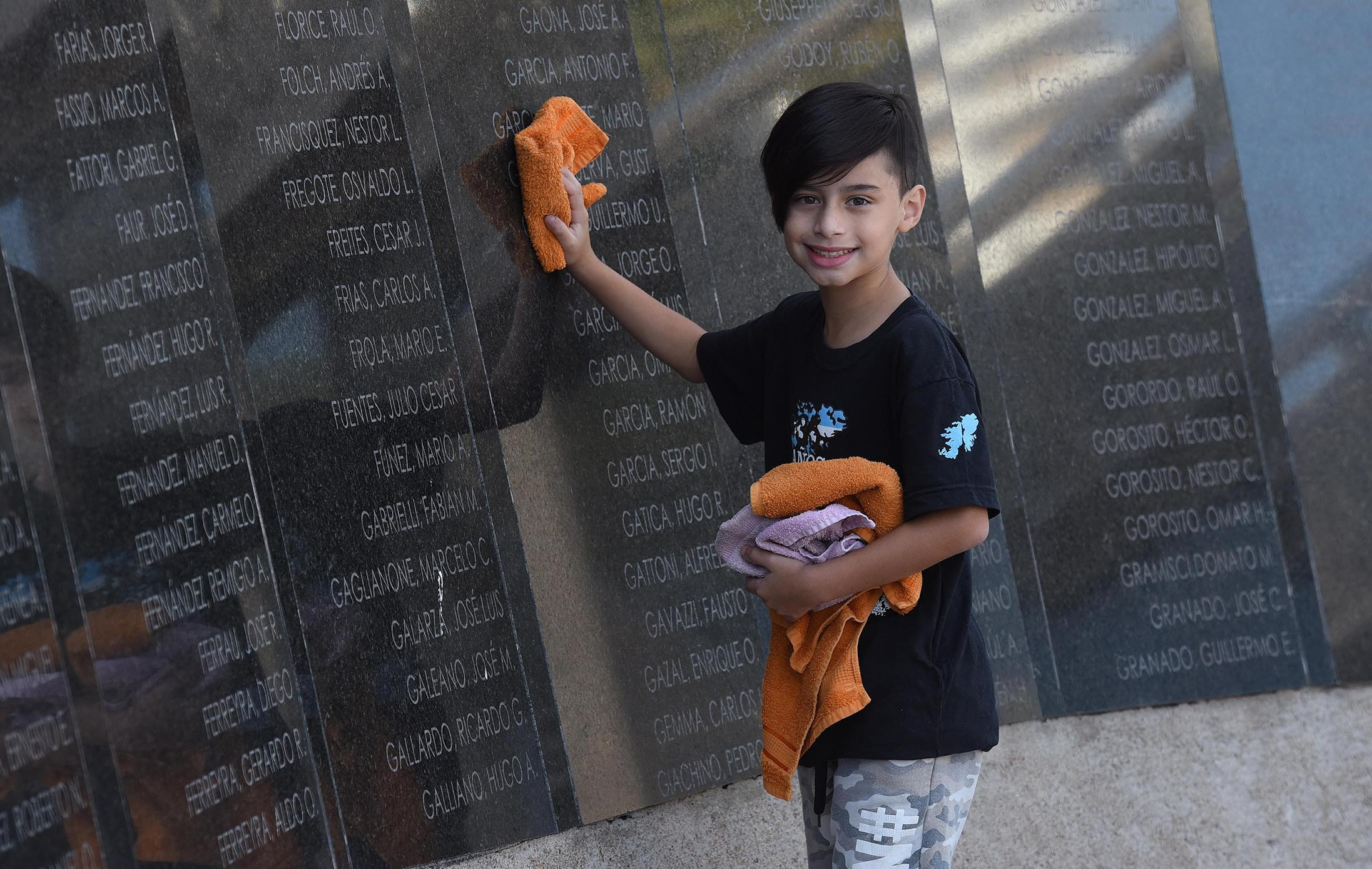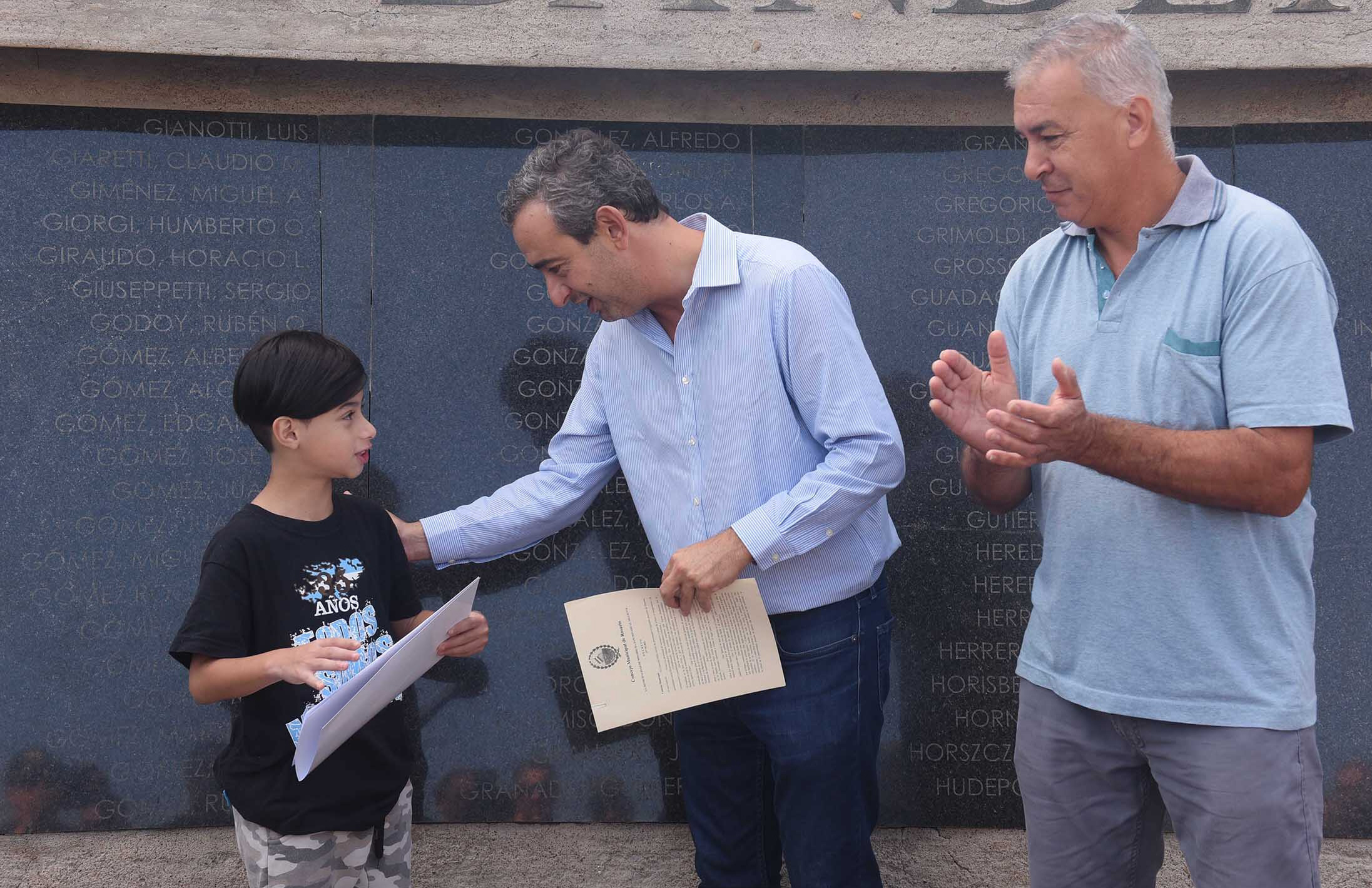 Un niño de 9 años, Ignacio Elías, recibió ayer el certificado de ciudadano distinguido de Rosario por acudir cada domingo a las 10 al Cenotafio de Malvinas, frente al Monumento a la Bandera, a limpiar las placas de granito de los héroes de la guerra de 1982 por la soberanía de las islas australes.