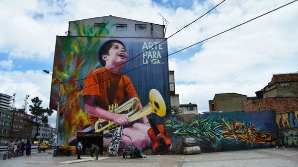 El arte callejero de Bogotá, Colombia, es más que nada político y social. Luego de protestas por la muerte en manos de la policía de un adolescente artista en el año 2011, ya no se persigue como criminales a los que realizan arte urbano, por lo que los murales invadieron la ciudad. Desde Carrera 4 y Calle 12, hasta las callecitas de La Candelaria, las paredes son un lienzo interminable.