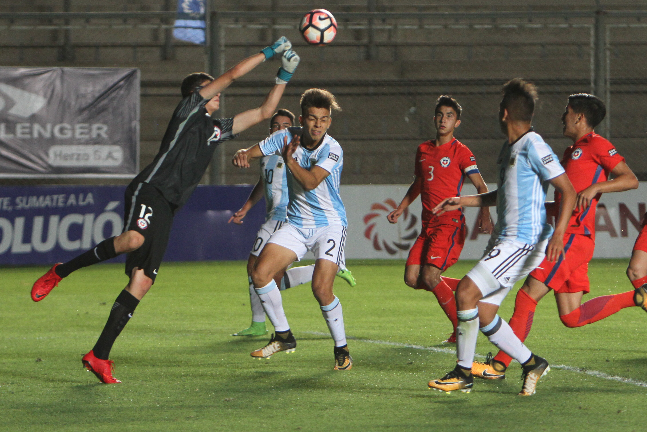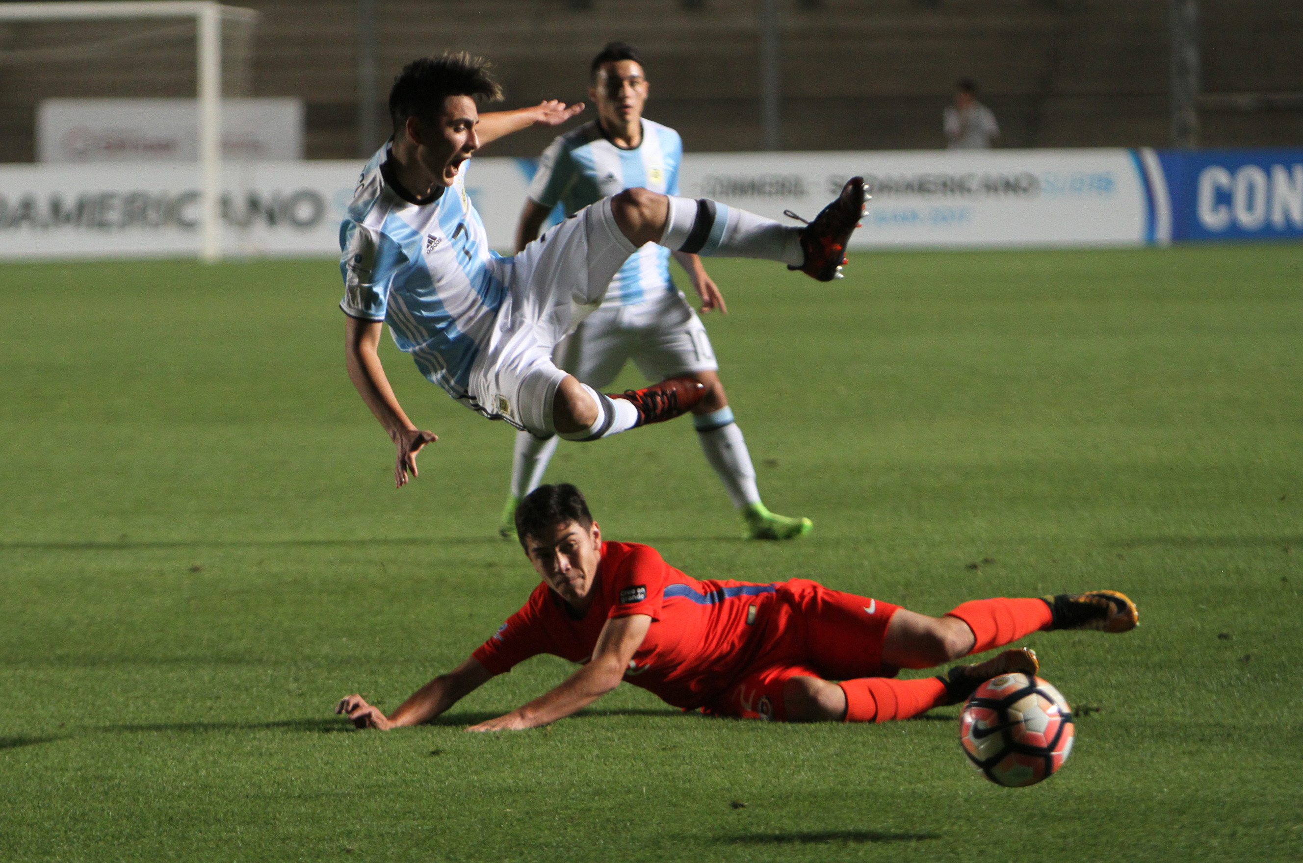 Duro. El defensor David Tati Díaz fue muy fuerte a la marca de Franco Orozco en una jugada que le terminó costando la tarjeta amarilla cuando apenas iban 5″ de juego. Chile y Argentina salieron a jugar el choque como si se tratara de una final y eso por momentos les pasó factura a los chicos que se excedieron en los roces.
