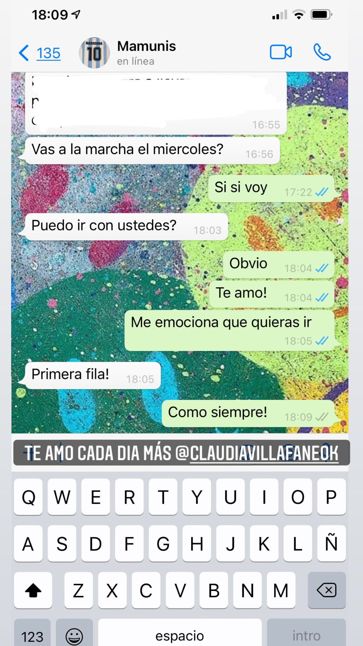 “¿Vas a la marcha del miércoles? ¿Puedo ir con ustedes?”, fueron las preguntas que le hizo a su hija, que a su vez respondió: “Sisi voy, obvio, te amo. Me emociona que quieras ir”.