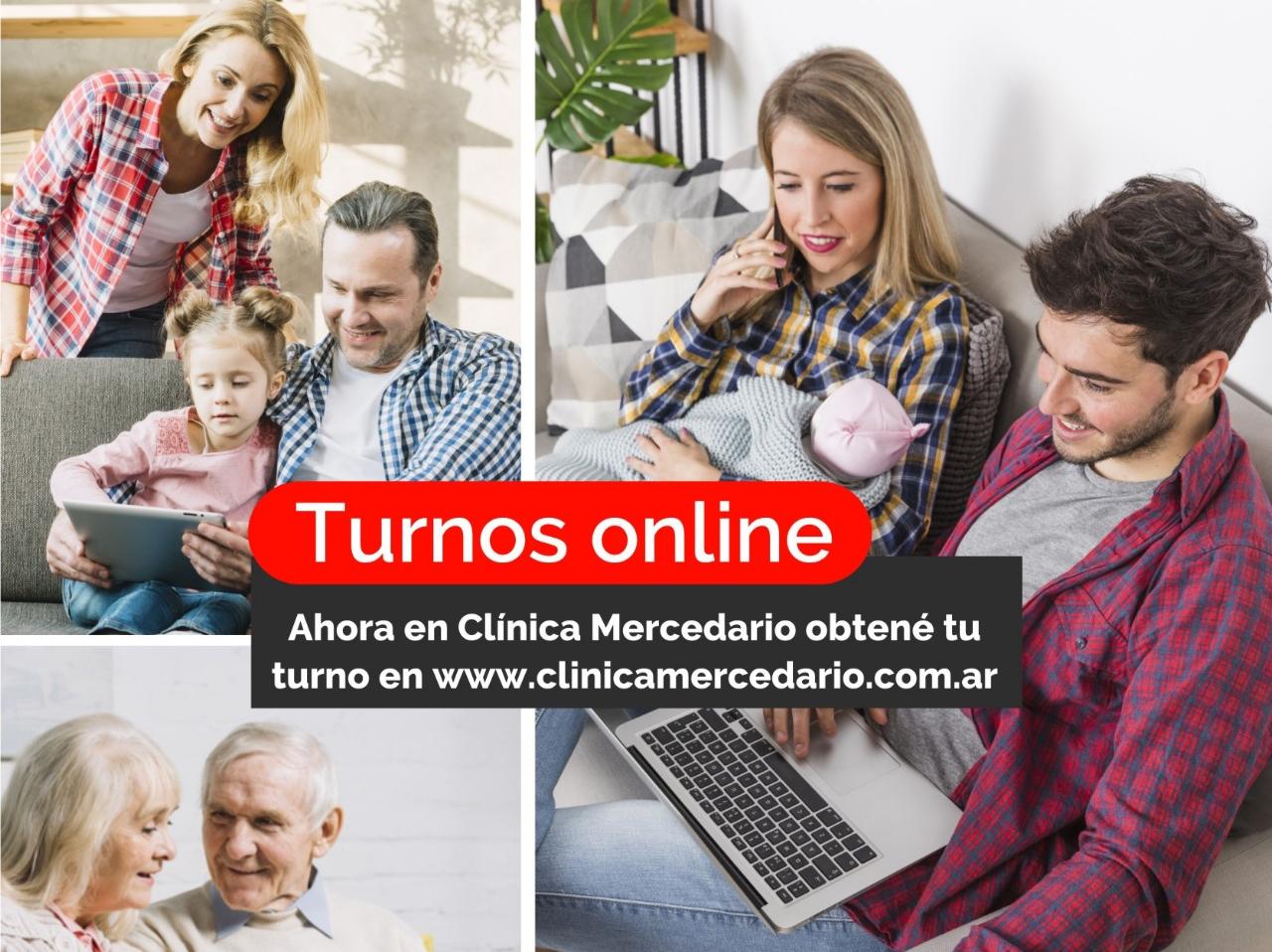 Desde www.clinicamercedario.com.ar se puede acceder para solicitar los turnos donde el paciente ingresa su DNI y completa sus datos personales, pudiendo elegir profesionales y especialidades de los diversos servicios que ofrece la Clínica.