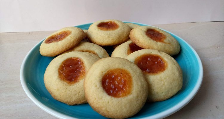 Batir la manteca con el azúcar, perfumar con la esencia y ralladura. Agregar las yemas y batir bien. Por último colocar la harina y tomar la masa hasta que quede todo bien incorporado. Envolver en film y llevar a heladera por al menos 2 horas. Una vez transcurrido el tiempo tomar la masa y formar bolitas (que sean todas del mismo tamaño) y con el dedo hacer un hueco en el medio, luego rellenar con el dulce a gusto. Finalmente colocar en una placa enharinada y llevar a horno a 180 grados C por 15 minutos