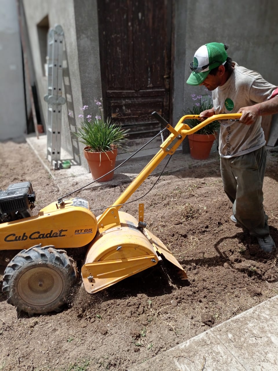 El pack generalmente incluye la preparación de suelo, con movimiento del mismo, que se hace con un rotovator típico, pero más chico que el tradicional de las fincas, y de uso específico en jardinería. Juan Manuel contó: "Con el paso de esa herramienta, el suelo queda más suelto, hasta dócil, y mucho más fácil de trabajar. Esta tarea le da aire y le permite a la alfombra verde posteriormente respirar mejor y crecer".