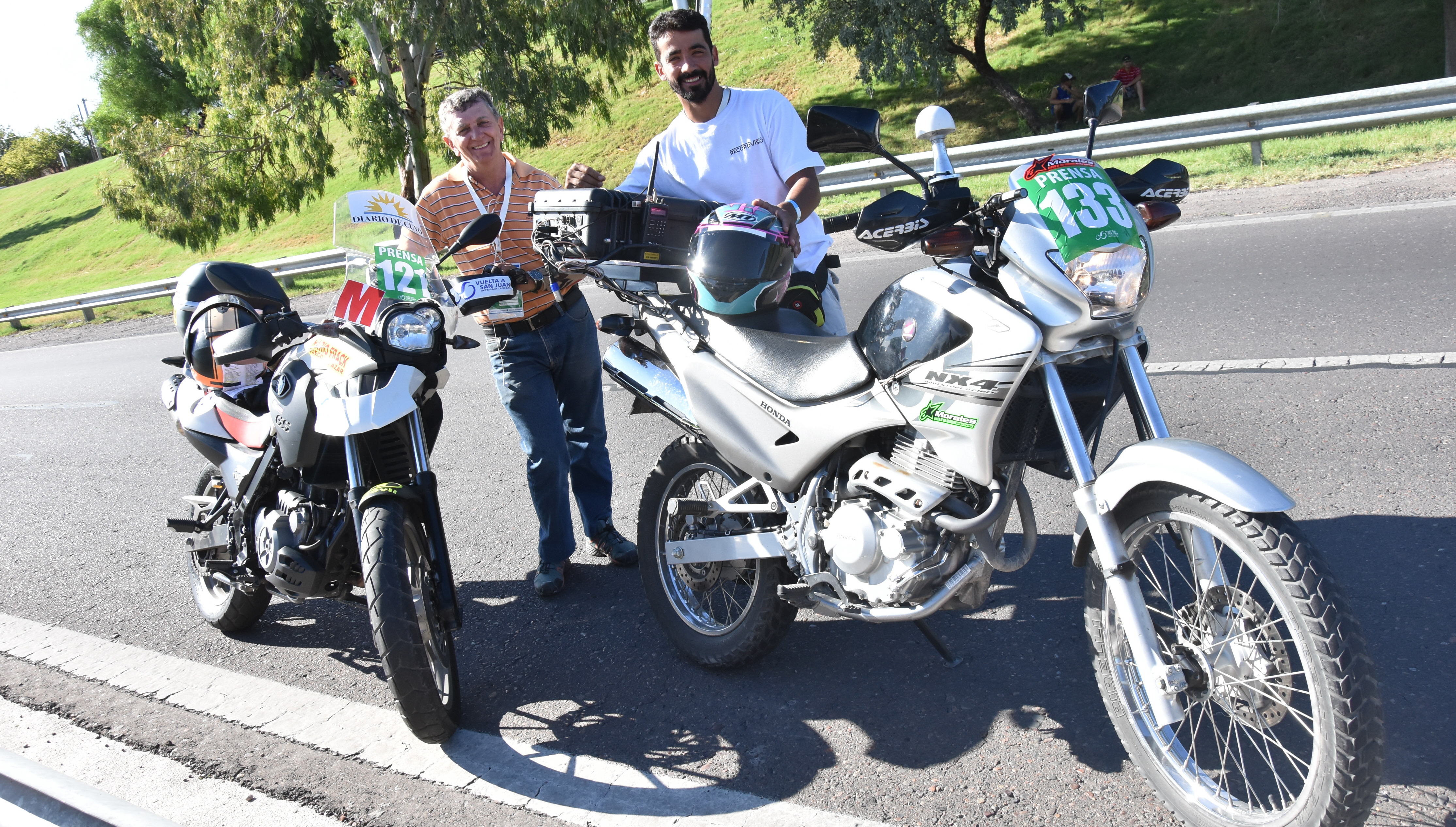 Mario Frack y Federico Chica son expertos del motociclismo de velocidad y se lucen como choferes en la Vuelta.Los dos la tienen clara. Por eso arriba de las motos que manejan transmiten seguridad a sus acompañantes a la hora de escabullirse dentro del pelotón para conseguir la mejor imagen. Y claro, los dos se cansaron de ganar títulos en motociclismo de velocidad. Mario Frack es el chofer de DIARIO DE CUYO y Chica es chofer de ESPN.