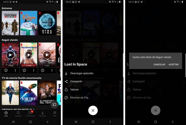 Con este update, Netflix ahora añade un menú debajo justo de cada contenido que tenemos en esa sección. A la derecha de la pantalla se pueden observar los tres puntos verticales que, al pulsar, dan acceso a un menú con varias opciones.