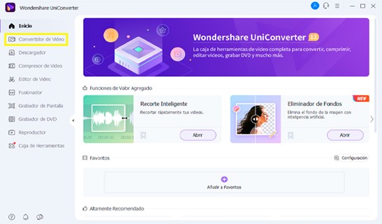 Al abrir la aplicación en la PC o en la Mac, se podrá encontrar una barra lateral a la izquierda. En la segunda opción, de arriba a abajo, se encuentra el botón “convertidor de videos” para presionar.