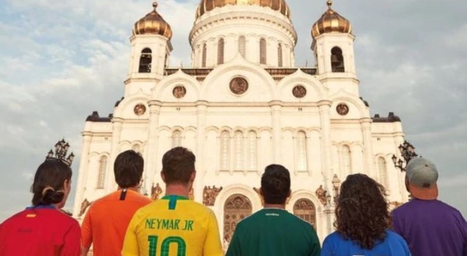 Durante una visita al mundial de fútbol, seis activistas encontraron una creativa forma de burlar la ley rusa que prohíbe exhibir la bandera del orgullo gay.