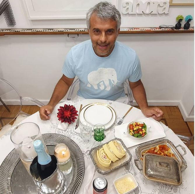 Solito. "Menú para uno solo y con la más linda compañía: conmigo mismo. Feliz 2021!, Seamos felices" escribió el periodista y conductor Mario Massaccesi junto a una imagen en la que se lo ve frente a un festín.