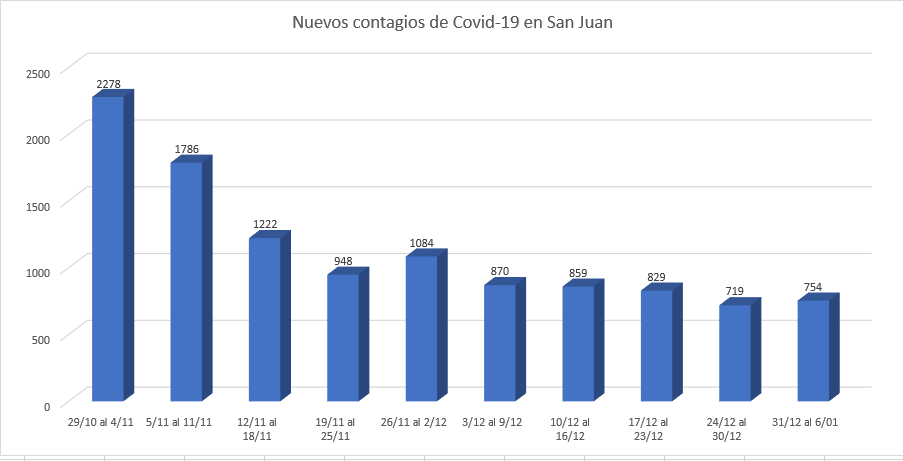 La semana anterior, del 24 al 30 de diciembre, fue la de menor cantidad de casos, con 719 contagiados.