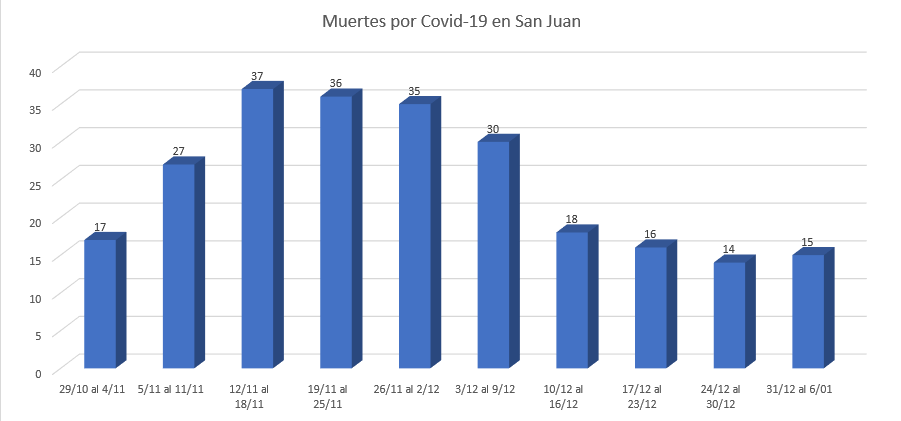 El informe del Ministerio de Salud Pública de San Juan del jueves 29 de octubre del año pasado fue el que registró el pico hasta ahora en la provincia respecto a la cantidad de nuevos casos de coronavirus. Y desde aquel día a este miércoles 6 de enero transcurrieron exactamente 10 semanas, en las que se aprecia una caída en la curva de contagios en la primera mitad y un ‘amesetamiento’ en la segunda.