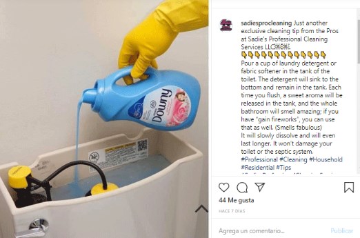 Sadie’s Professional Cleaning Services publicó una foto con su explicación correspondiente, donde muestra cómo, de manera sencilla y económica, se puede mantener perfumado el baño. Y lo único que se precisa, es algún producto para lavar la ropa.