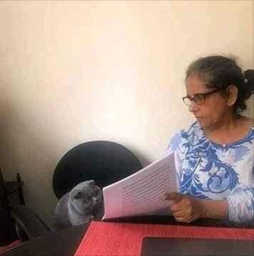 En los últimos días se viralizó en Internet la imagen de un gato gris sentado al lado de su dueña, quien lo está regañando por haber salido mal en un examen, acompañada con distintas leyendas. ¿Pero, cuál es el origen de esta imagen?