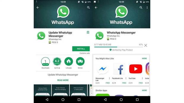 Según la información que aportaba la aplicación antes de que fuera retirada de la tienda de Google para el sistema Android (Play Store), el falso WhatsApp había sido descargado cerca de un millón de veces.
